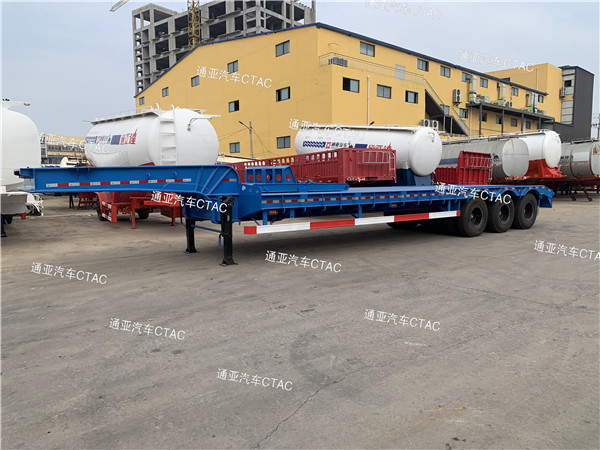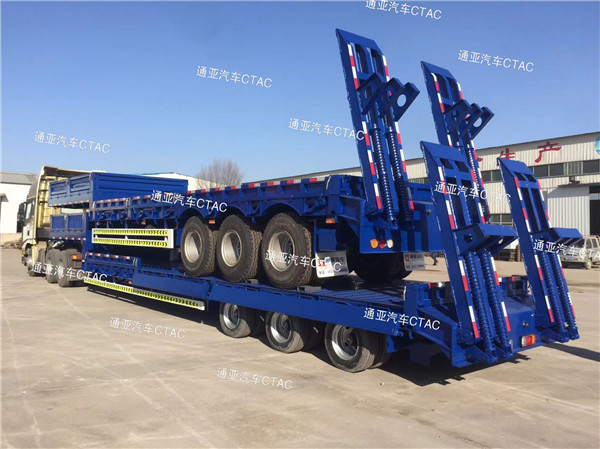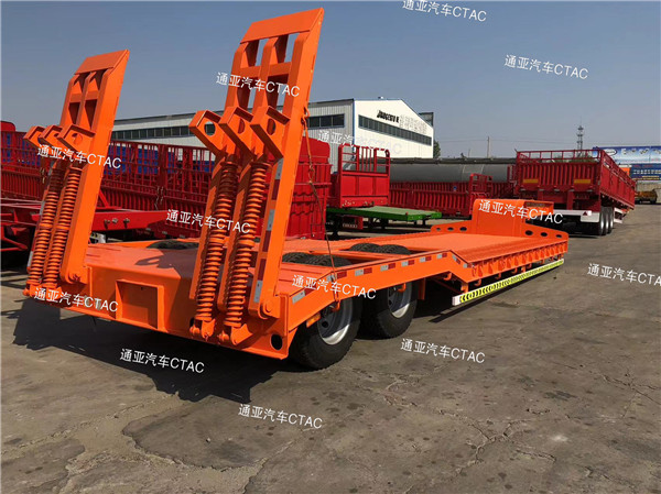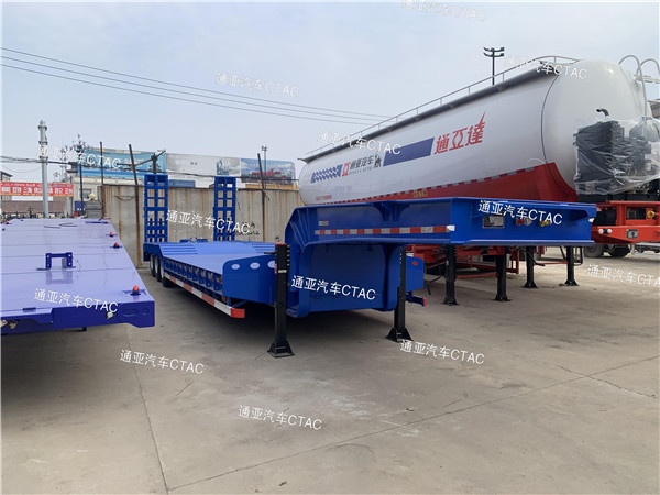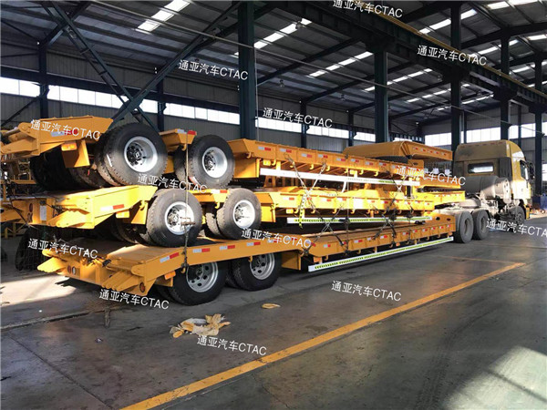 低平板半掛車可運輸大型工程機械設備、集裝箱、木材、散貨等,一車多用深受客戶喜愛。