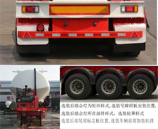 頂部封閉不可開槽,后部不可開啟;罐體總?cè)萘?48立方米,罐體有效容積:46立方米;罐體外形尺寸A型:罐體長(含封頭)10500mm,寬2550mm,最大截面處高度3250mm,前后封頭直徑2550mm,選裝罐體外形尺寸B型:罐體長(含封頭)11100mm,寬為2550mm,最大截面處高度3250mm,前后封頭直徑2550mm,選裝罐體外形尺寸C型:罐體長(含封頭)12300mm,寬為2550mm,最大截面處高度3250mm,前后封頭直徑2550mm;整車長度(mm)為:13000,加裝機(jī)組,罐體外形尺寸為B型、C型;整車長度(mm)為:12300,加裝機(jī)組,罐體外形尺寸為A型,不加裝機(jī)組,罐體外形尺寸為B型、C型;整車長度(mm)為:11650,不加裝機(jī)組,罐體外形尺寸為A型;選裝后組合燈為矩形樣式,選裝號牌照板安裝位置,選裝后組合燈所在部件樣式,選裝管道樣式及罐體椎體個數(shù),選裝升降式扶梯,選裝輪罩樣式,選裝后部尾部標(biāo)志板位置,選裝車輛前部加裝機(jī)組,選裝前封頭下部大梁樣式,選裝卸口位置(側(cè)面或后側(cè)),選裝空氣懸架,選裝上部出料管結(jié)構(gòu),選裝前端加裝吊桿樣式,選裝進(jìn)氣管道樣式;ABS系統(tǒng)生產(chǎn)廠家:廣州瑞立科密汽車電子股份有限公司,梁山順安達(dá)汽車科技有限公司,廣州市西合汽車電子裝備有限公司,山東梁山德爾福汽車科技有限公司,型號:CM2XL-4S/2M,SAD-ABS4S/2M,XH-GQ4S2M-E01,DEF-ABS4S/3M;側(cè)面及后下部防護(hù)裝置所用材料材質(zhì)為:Q235,側(cè)面及后下部防護(hù)裝置與車輛連接方式均為:螺栓連接或焊接,后部防護(hù)裝置的主要尺寸參數(shù):斷面尺寸(mm)為120×68,離地高度為:500mm,選裝側(cè)面防護(hù)裝置所用材料材質(zhì)為:鋁合金,與車架連接方式為螺栓連接;車長/牽引銷到車輛最前端距離/軸距/后懸對應(yīng)關(guān)系為:11650/455/7650+1310+1310/925,12300/1105/7650+1310+1310/925,12300/455/8400+1310+1310/825,13000/1155/8300+1310+1310/925,13000/1155/8400+1310+1310/825,12300/805/7950+1310+1310/925,13000/1505/7950+1310+1310/925.