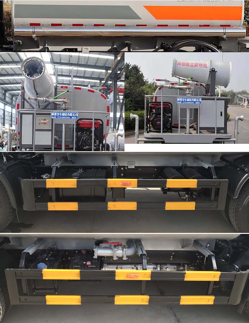 其它 裝罐體及清洗裝置,用于清理路面或管道沉積物或清洗機(jī)械表面;僅采用3800mm軸距;罐體總?cè)萘繛?.6立方米,罐體有效容積為7.3立方米;罐體截面形狀:罐體尺寸(長(zhǎng)×長(zhǎng)軸×短軸)(mm):4100×2000×1250;選裝兩側(cè)管箱樣式,選裝后部加裝霧炮及霧炮安裝位置,選裝自吸接口;側(cè)后防護(hù)裝置材料均為:Q235B,側(cè)后防護(hù)裝置與車架連接方式均為螺栓連接,后防護(hù)裝置截面尺寸為:120×60mm,離地高度410mm;ABS型號(hào)及生產(chǎn)廠家:ABS/ASR-24V-4S/4M/襄陽(yáng)東風(fēng)隆誠(chéng)機(jī)械有限責(zé)任公司.隨底盤選裝尿素罐、儲(chǔ)氣筒、蓄電池等安裝位置.