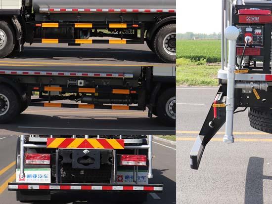 | 其它 | 裝備有罐體和噴灑系統(tǒng),用于園林綠化噴灑作業(yè).介質(zhì):丙酮水溶液,罐體總?cè)萘繛?0.3立方米,罐體有效容積為9.8立方米,罐體尺寸(長(zhǎng)×長(zhǎng)軸×短軸)(mm):4700×2100×1400,采用4500mm軸距,選裝罐體尺寸(長(zhǎng)×長(zhǎng)軸×短軸)(mm):4400×2150×1450,采用4200mm軸距;選裝兩側(cè)管箱樣式,選裝霧炮安裝位置及樣式,選裝后部不加裝霧炮裝置,選裝側(cè)面無(wú)裝飾管;側(cè)后防護(hù)裝置材料均為:Q235B,側(cè)后防護(hù)裝置與車(chē)架連接方式均為螺栓連接,后防護(hù)裝置截面尺寸為:120×68mm,后防護(hù)裝置離地高度450mm,ABS型號(hào)為CM4XL-4S/4M,生產(chǎn)廠(chǎng)家為廣州瑞立科密汽車(chē)電子股份有限公司. | ||