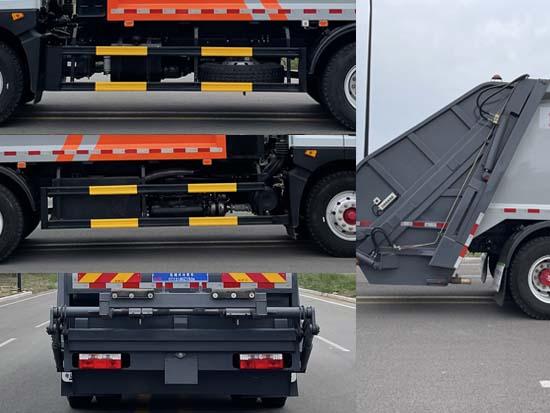 | 其它 | 該車裝備有垃圾箱體及垃圾裝填器,用于將垃圾自行裝入壓縮、轉運和卸料;僅采用軸距為:4500mm;選裝翻斗裝置時車長為8760mm,后伸量為240mm;整備質量10700kg;側防護裝置材料為:Q235,側防護裝置與車架連接方式為螺栓連接;后下部防護為車輛部件代替,部件離地高度450mm;ABS系統生產廠家,型號 :焦作博瑞克控制技術有限公司,J ABS;襄陽東風隆誠機械有限責任公司,ABS/ASR-24V-4S/4M,隨底盤選裝發動機,B6.2NS6B210,CY4SK761,D4.0NS6B195,D4.5NS6B220,YCS04200-68,B6.2NS6B230,YCY30165-60油耗值(L/100km)分別為:26.3,26.8,26.6,26.6,26.4,26.0,26.5.選裝ETC車載裝置. | ||