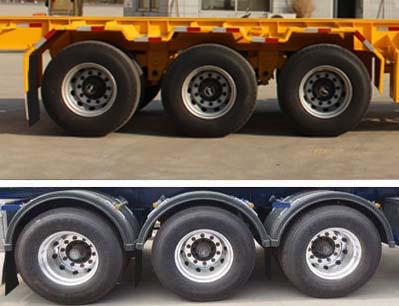 該車用于運輸40英尺集裝箱或非危險品罐箱.選裝輪罩樣式和后部樣式及后部燈具,選裝后尾樣式,選裝側(cè)防護(hù)樣式;牽引銷處車架高度為90mm,選裝牽引銷大梁高度為:120mm,150mm,170mm,180mm,190mm,194mm;ABS系統(tǒng)生產(chǎn)廠家:廣州瑞立科密汽車電子股份有限公司,梁山順安達(dá)汽車科技有限公司,ABS型號:CM2XL-4S/2K(4S/2M),SAD-ABS4S/2M;側(cè)面及后下部防護(hù)裝置所用材料材質(zhì)均為:Q235,側(cè)面防護(hù)裝置與車輛連接方式為:螺栓連接,后部防護(hù)裝置與車輛連接方式為:焊接,后部防護(hù)裝置的主要尺寸參數(shù):斷面尺寸(mm)為140×40,離地高度為:480mm.
