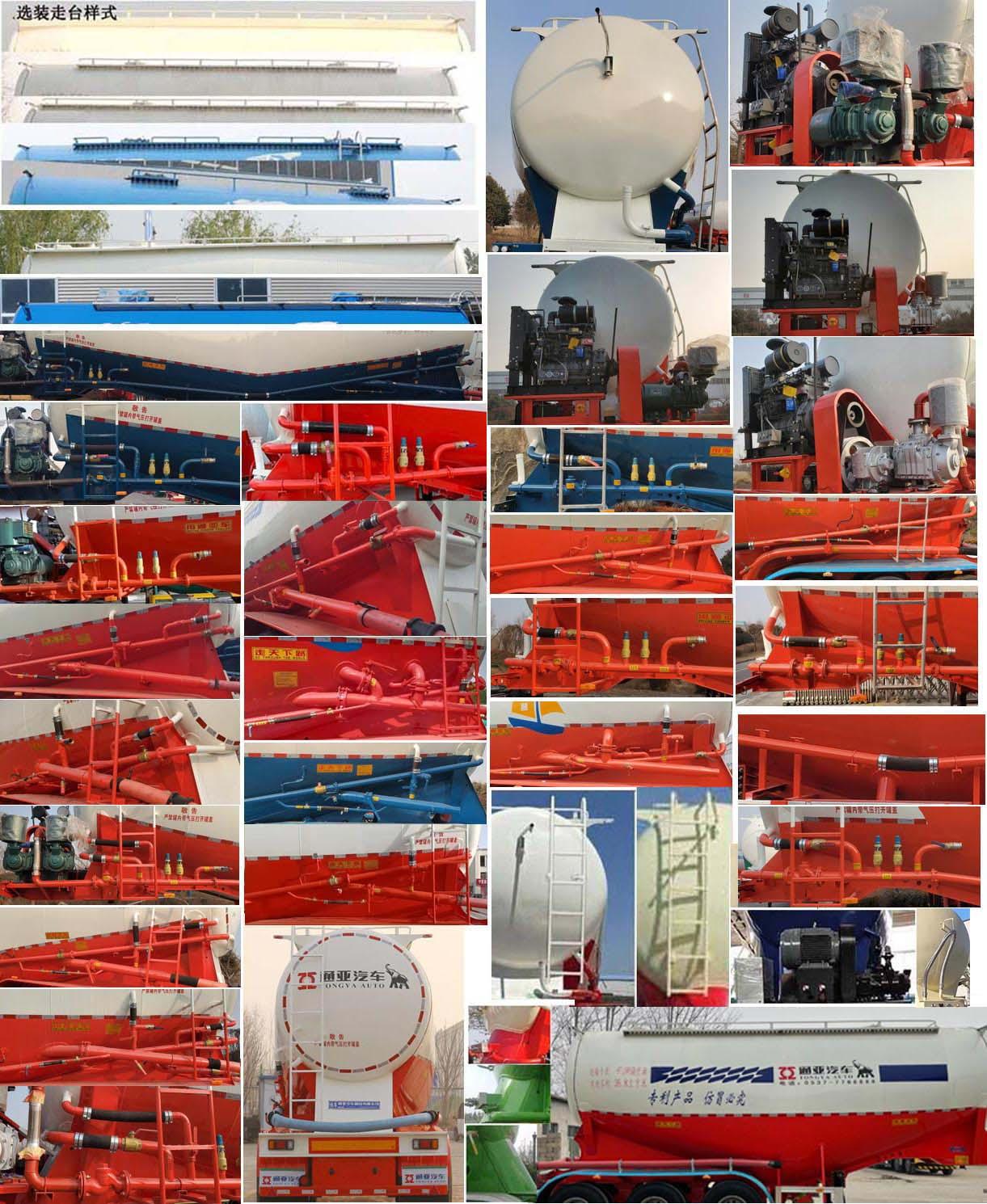 頂部封閉不可開槽,后部不可開啟;罐體總容量:45立方米,罐體有效容積:42.9立方米,運輸介質:干煤粉;當罐體外形尺寸罐體長(含封頭)10050mm,最大截面處寬2550mm,最大截面處高3180mm,前后封頭直徑為1910mm(選裝前后封頭直徑為2010mm);當輪胎型號為11R22.5 14PR時,輪胎中間加裝雨簾;選裝車輛前部加裝機組,選裝走臺樣式,選裝后組合燈樣式,選裝前位燈樣式,選裝爬梯安裝位置及個數(一個/兩個/三個),選裝前后封頭處進氣管位置和個數,選裝大梁圓孔樣式和非圓孔樣式,選裝大梁后部圓弧樣式,選裝牽引銷后大梁樣式,選裝管道樣式,選裝機組樣式,選裝外觀樣式;ABS系統生產廠家:廣州瑞立科密汽車電子股份有限公司,梁山順安達汽車科技有限公司,廣州市西合汽車電子裝備有限公司,山東梁山德爾福汽車科技有限公司,型號:CM2XL-4S/2M,SAD-ABS4S/2M,XH-GQ4S2M-E01,DEF-ABS4S/3M;側面及后下部防護裝置所用材料材質為:Q235,側面及后下部防護裝置與車輛連接方式均為:螺栓連接或焊接,后部防護裝置的主要尺寸參數:斷面尺寸(mm)為120×68,離地高度為:500mm;車長/牽引銷到車輛最前端距離/軸距/后懸對應關系為:10950/1470/5430+1310+1310/1430,10200/720/5430+1310+1310/1430,10950/1700/5200+1310+1310/1430,10200/950/5200+1310+1310/1430,10950/1650/5700+1310+1310/980,10200/900/5700+1310+1310/980. |
