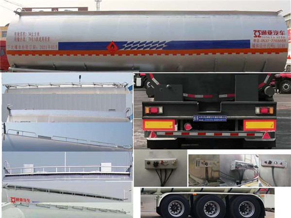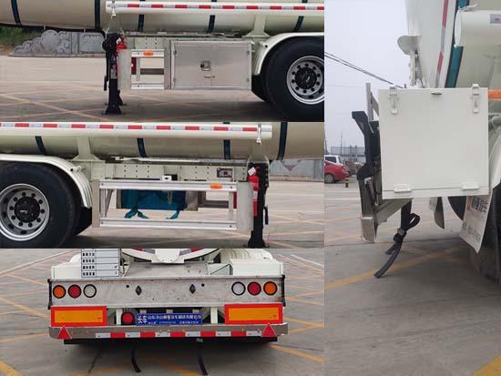 采用適用于牽引危險品運輸半掛車的牽引車.類項號:3,運輸危險貨物車輛的類型為:FL.罐體有效容積:34立方米;該車加裝保溫層,罐體為鵝頸式,保溫層內部罐體外形尺寸為:長9600mm,前端直徑為:2030mm,后端直徑為:2280mm,當保溫層厚度為:50mm,罐體(含保溫層)尺寸為:長9700mm,前端直徑為:2130mm,后端直徑為:2380mm;當保溫層厚度為:80mm,罐體(含保溫層)尺寸為:長9760mm,前端直徑為:2190mm,后端直徑為:2440mm;當保溫層厚度為:100mm,罐體(含保溫層)尺寸為:長9800mm,前端直徑為:2230mm,后端直徑為:2480mm;選裝保溫層內部罐體外形尺寸為:長9200mm,前端直徑為:2010mm,后端直徑為:2260mm,當保溫層厚度為:50mm,罐體(含保溫層)尺寸為:長9300mm,前端直徑為:2110mm,后端直徑為:2360mm;當保溫層厚度為:80mm,罐體(含保溫層)尺寸為:長度為:9360mm,前端直徑為:2170mm,后端直徑為:2420mm;當保溫層厚度為:100mm,罐體(含保溫層)尺寸為:長度9400mm,前端直徑為:2210mm,后端直徑為:2460mm;選裝號牌照板安裝位置,選裝后組合燈為圓形樣式,選裝后尾樣式;選裝外蒙皮樣式及有無繃帶結構,選裝走臺樣式,選裝電氣路連接器固定座安裝位置(中間/左側/右側),當輪胎型號為11R22.5 12PR時,輪胎中間加裝雨簾;ABS系統生產廠家:廣州瑞立科密汽車電子股份有限公司,廣州市西合汽車電子裝備有限公司,ABS型號:CM2XL-4S/2M,SXH-GQ4S2M-E01;側面及后下部防護裝置所有材料材質:Q235B,側面及后下部與車輛連接方式均為:螺栓連接,后部防護裝置的主要尺寸參數:斷面尺寸(mm):120×68,離地高度:500mm.車長/牽引銷到車輛最前端距離/軸距/后懸(mm)對應關系為:10200/1400/4830+1310+1310/1350,10200/1250/4980+1310+1310/1350,9800/1300/4530+1310+1310/1350,9800/1150/4680+1310+1310/1350. ![]() ![]() ![]()