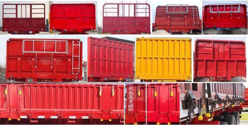 | 其它 | 卸貨方式為:側卸;安裝有手動鎖緊機構;選裝前擋樣式,選裝側面樣式(五開門或六開門)及欄板樣式(豎瓦楞),選裝后尾樣式,選裝欄板結構為下開門,吊開門結構,選裝包角樣式及合頁樣式;ABS系統生產廠家:廣州瑞立科密汽車電子股份有限公司,梁山順安達汽車科技有限公司,廣州市西合汽車電子裝備有限公司,山東梁山德爾福汽車科技有限公司,型號:CM2XL-4S/2M,SAD-ABS4S/2M,XH-GQ4S2M-E01,DEF-ABS4S/3M;側面及后下部防護裝置所用材料材質為:Q235B,側面防護裝置與車輛連接方式為螺栓連接,后下部防護裝置與車輛連接方式為焊接,后部防護裝置的主要尺寸參數:斷面尺寸(mm)為140×50,離地高度為:440mm; | ||