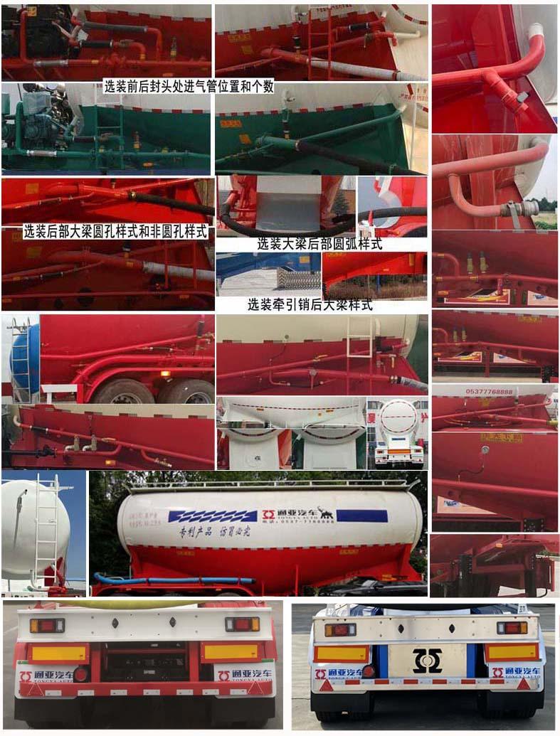 | 其它 | 罐體總容量為:57立方米,罐體有效容積:54.8立方米;運輸介質:煙煤粉,罐體尺寸(含封頭)長:11330mm,寬:2540mm,最大截面高度:3350mm(選裝罐體最大截面高度為:3450mm),前后封頭直徑:2010mm(選裝前后封頭直徑為:2110mm),選裝車輛前部不加裝機組,ABS系統生產廠家:廣州瑞立科密汽車電子股份有限公司,梁山順安達汽車科技有限公司,山東梁山德爾福汽車科技有限公司,型號:CM2XL-4S/2K(4S/2M),SAD-ABS4S/2M,DEF-ABS4S/3M;側面及后下部防護裝置所用材料材質為:Q235,側面及后下部防護裝置與車輛連接方式均為:螺栓連接或焊接,后部防護裝置的主要尺寸參數:斷面尺寸(mm)為120×68,離地高度為:500mm.頂部封閉不可開槽,后部不可開啟.選裝燈具型號及后組合燈所在部件樣式.選裝大梁后部可以為弧形,選裝爬梯的安裝位置可以在罐體左側前部或后部或罐體后部,爬梯個數可以為一個或兩個或三個,選裝輪罩樣式及鋁合金輪轂,選裝走臺樣式,選裝罐頂升降護欄,頂部可為擋水槽式也可為走臺式,選裝前后封頭處進氣管位置和個數,工具箱位置可選裝,選裝罐蓋個數及位置,選裝罐體管道的樣式,選裝大梁可以為鉆孔樣式,選裝牽引銷后大梁樣式,選裝下出料樣式,選裝爬梯安裝位置(前部/側面/后部),選裝后尾小工具箱樣式,選裝側面管道樣式,選裝機組樣式,選裝雙助吹樣式,選裝支腿連接件樣式,選裝外接氣源樣式,選裝壓力表安裝位置,選裝尾部標志板安裝位置,選裝號牌板安裝位置,選裝雙邊支梁樣式,選裝機組樣式. | ||