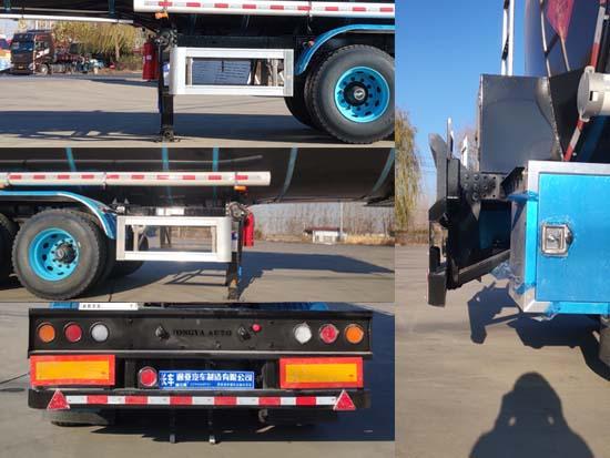 | 其它 | 采用適用于牽引危險品運輸半掛車的牽引車,危險貨物運輸車輛類型:FL型,準運介質的最大密度:974千克/立方米;罐體總容量:33.69立方米,罐體有效容積:32立方米,該車加裝保溫層,保溫層內部罐體外形尺寸為:長9500mm,罐體為鵝頸式,前端直徑:2060mm,后端直徑:2220mm,保溫層厚度為:50mm,罐體(含保溫層)尺寸長9600mm,前端直徑:2160mm,后端直徑:2320mm,保溫層厚度為:80mm,罐體(含保溫層)尺寸長9660mm,前端直徑:2220mm,后端直徑:2380mm;該車加裝空氣懸架,安裝盤式制動器;EBS系統生產廠家:廣州瑞立科密汽車電子股份有限公司;EBS型號:CM-TEBS;側面及后下部防護裝置所用材料材質均為:Q235,側面及后下部防護裝置與車輛連接方式均為:螺栓連接,后部防護裝置的主要尺寸參數:斷面尺寸(mm)為120×68,離地高度為:500mm. | ||