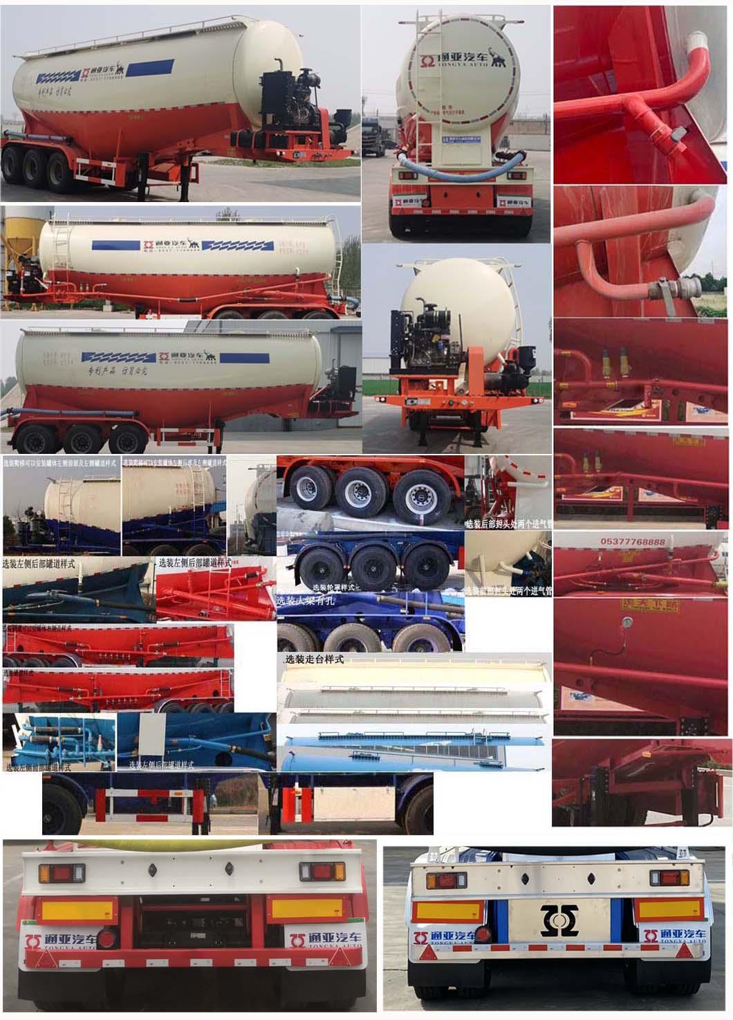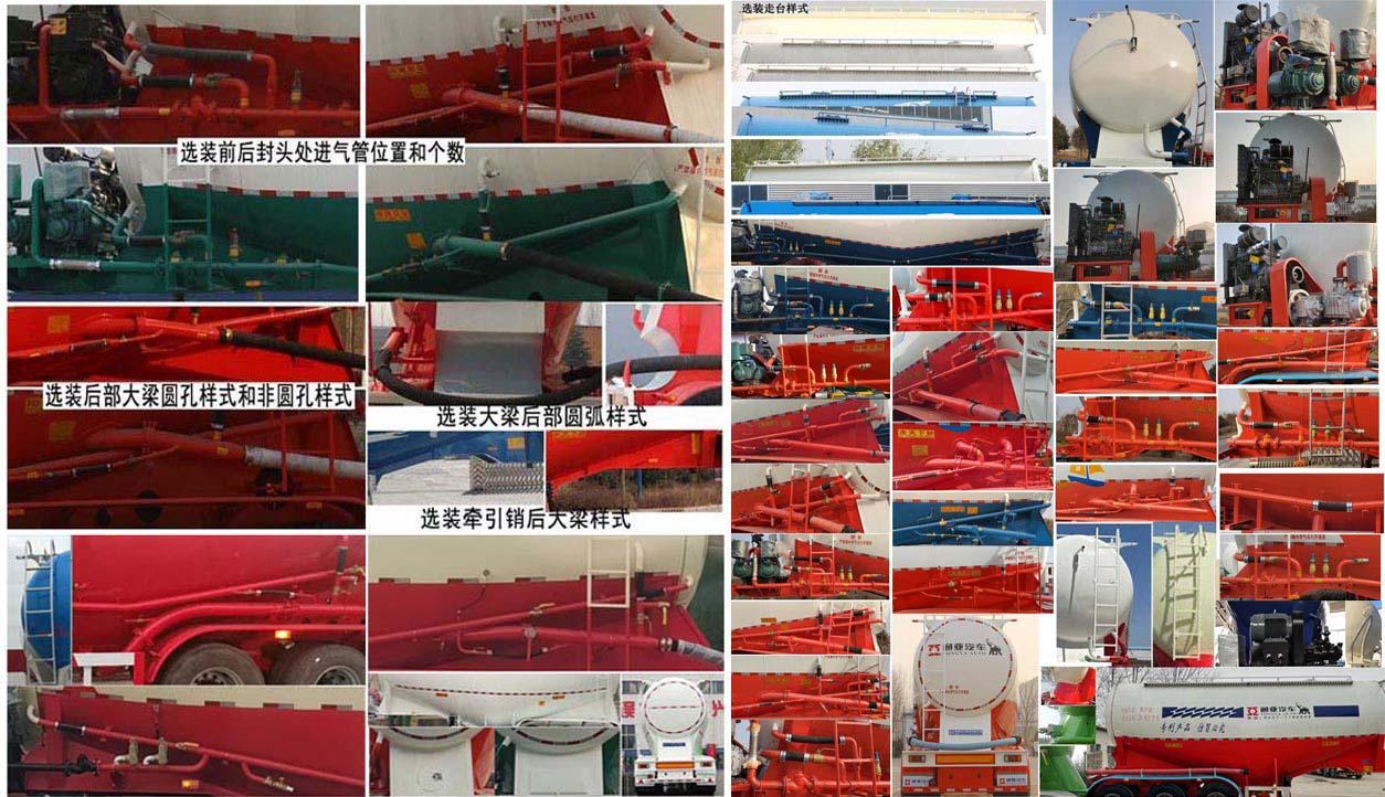 | 其它 | 罐體總容量為:40立方米,罐體有效容積:38.2立方米,運輸介質:粉煤灰,介質堆密度:830千克/立方米,罐體尺寸(不含封頭)長:8750mm,最大截面高度:3180mm,最大寬度:2490mm,選裝車輛前部不加裝機組,不帶機組時外形尺寸為(mm):9700×2500×3990,選裝雙助吹樣式,選裝支腿連接件樣式,選裝外接氣源樣式,選裝壓力表安裝位置,選裝大梁后部可以為弧形,選裝爬梯的安裝位置可以在罐體左側前部或后部或罐體后部,爬梯個數可以為一個或兩個或三個,選裝輪罩樣式及鋁合金輪轂,選裝走臺樣式,選裝罐頂升降護欄,頂部可為擋水槽式也可為走臺式,選裝前后封頭處進氣管位置和個數,工具箱位置可選裝,選裝罐蓋個數及位置,選裝罐體罐道的樣式,選裝大梁可以為鉆孔樣式,選裝輪罩樣式,選裝前后封頭處進氣管位置和個數,選裝大梁圓孔樣式和非圓孔樣式,選裝大梁后部圓弧樣式,選裝牽引銷后大梁樣式,選裝下出料樣式,選裝后尾小工具箱樣式,選裝側面管道樣式,選裝機組樣式,選裝部件位置因為制造誤差可有小變化;車長為10420mm時,軸距為;5550+1310+1310,5730+1310+1310,前懸/后懸:-/820;車長為9700mm時,軸距為;5550+1310+1310,5730+1310+1310,前懸/后懸:-/820;ABS系統生產廠家:威伯科汽車控制系統(中國)有限公司,廣州瑞立科密汽車電子股份有限公司,梁山順安達汽車科技有限公司,山東梁山德爾福汽車科技有限公司,型號:4005000810 4S2M,CM2XL-4S/2K(4S/2M),SAD-ABS4S/2M,DEF-ABS4S/3M;側面及后下部防護裝置所用材料材質為:Q235,側面及后下部防護裝置與車輛連接方式均為:螺栓連接或焊接,后部防護裝置的主要尺寸參數:斷面尺寸(mm)為120×68,離地高度為:500mm.頂部封閉不可開槽,后部不可開啟,選裝罐體樣式可以為雙倉或單倉,選裝燈具型號及后組合燈所在部件的樣式,選裝后部大梁可以為弧形,選裝尾部標志板安裝位置,選裝號牌板安裝位置. | ||