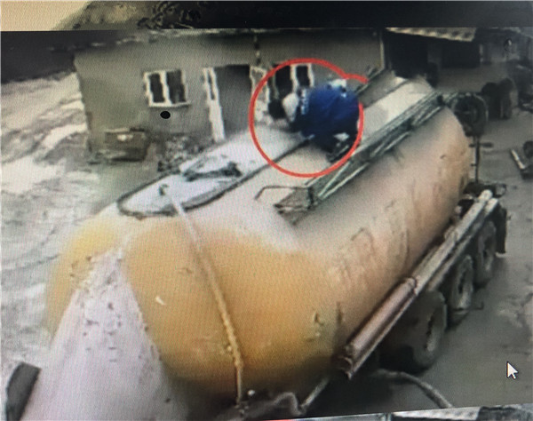可以看到一輛水泥車正在工作,工作人員突然感覺水泥罐有些不對勁,于是爬到罐頂查看,只見罐頂的封口處有些漏氣,男子順便就擰動罐口,想要看看到底是什么原因,而就在男子左右檢查的時候,水泥罐口突然噴出強大的沖擊力將男子崩飛了出去,狠狠地摔在地上,造成男子當場死亡,這驚險的一幕正好被監控記錄下來。