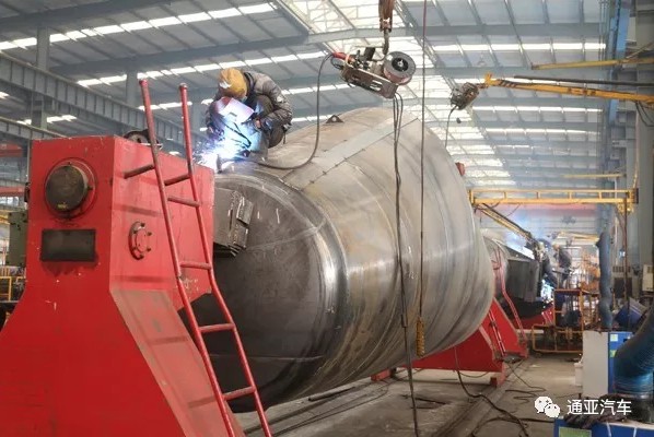 一眼望不到頭的車間里放著密密麻麻等待焊接的罐體。